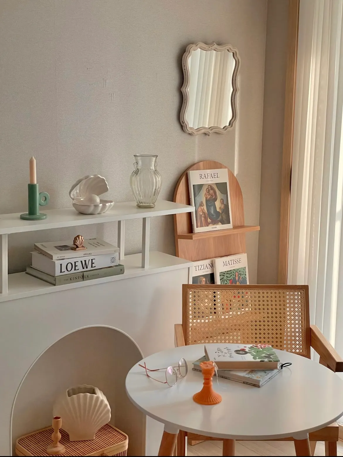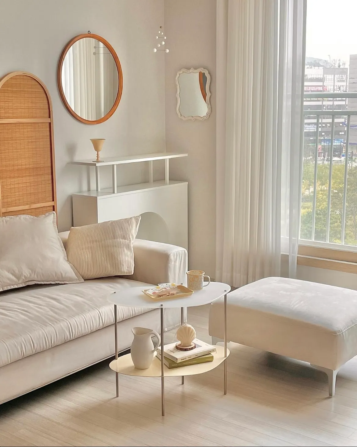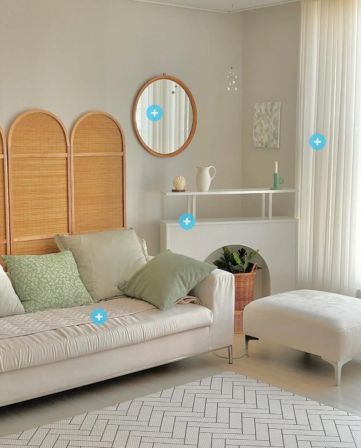 화이트 / 밀크 + 우드 + 초록 포인트 (식물, 커튼)