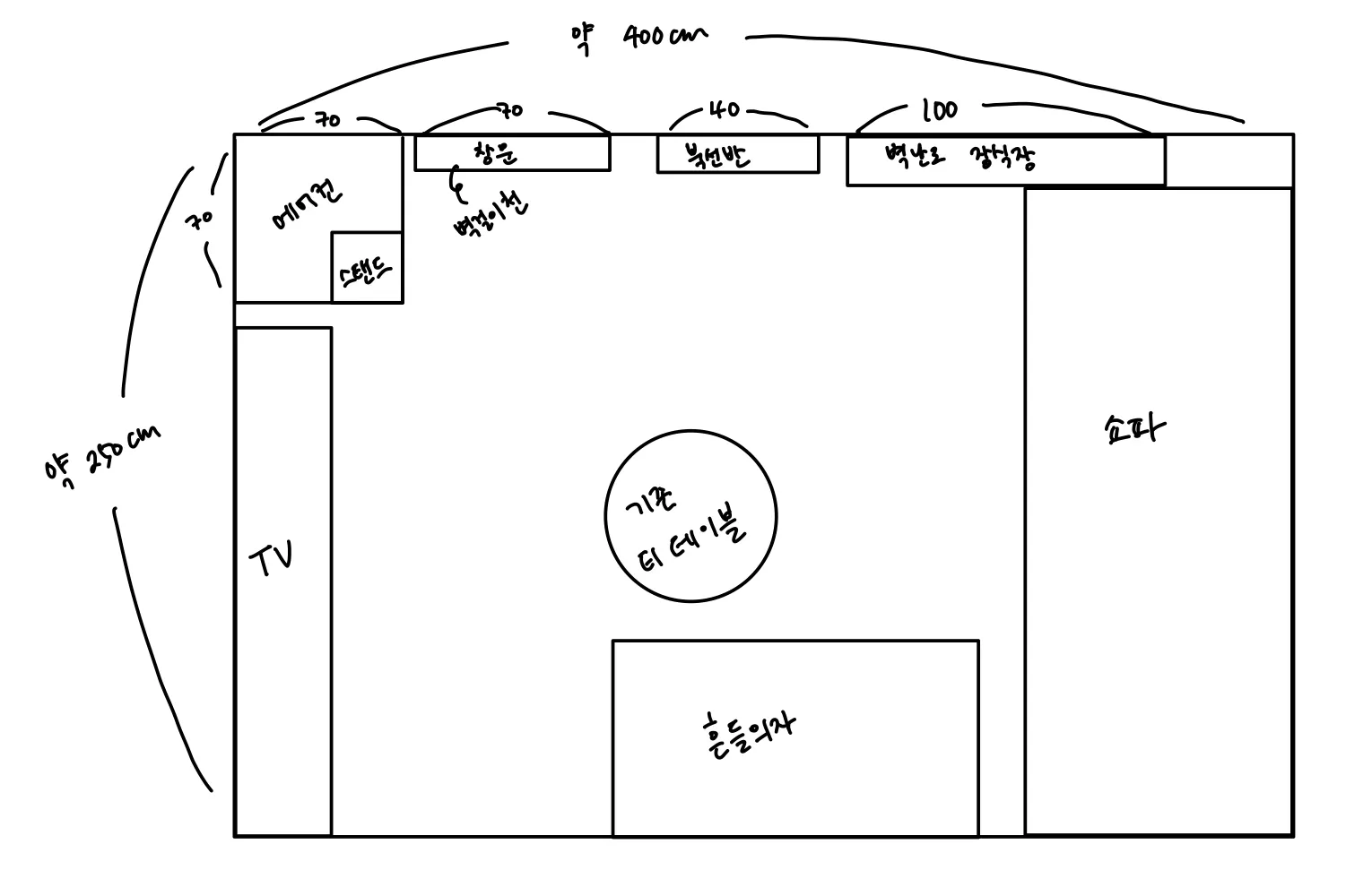 가능하다면 작은 티 테이블 + 의자 하나를 추가하여 더 느낌있게 하고 싶음