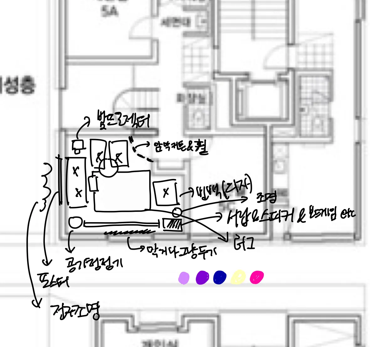 전체적으로 우주에 있는 듯한 느낌을 주면서도 편안한 분위기에서 영화를 볼 수 있도록 꾸미고 싶다!