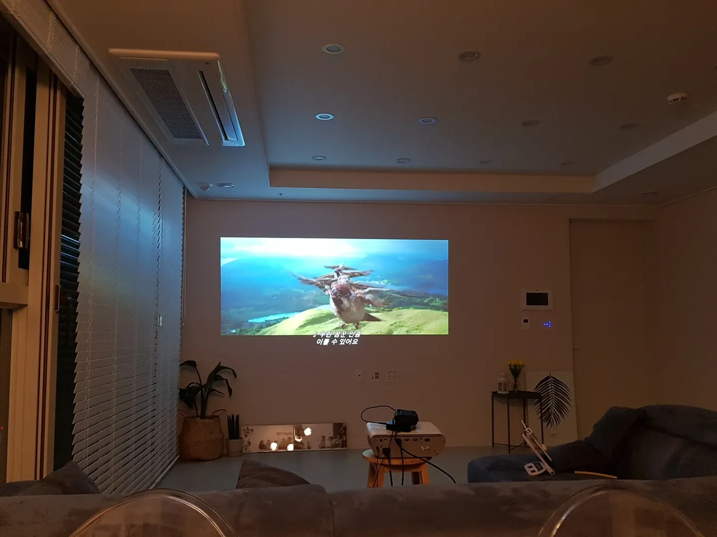 큰 스크린과 빔프로젝터 !!! (스크린은 벽에 쏴도 되는 환경이면 굳이 안사도 됨)